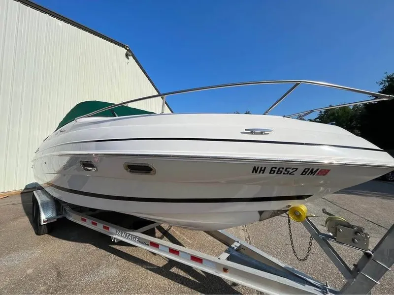 This 2007 Four Winns 255 Sundowner is a classic cuddy-cabin sport boat built for both comfort and performance. Equipped with a trailer, a Cuddy cabin with V‑berth accommodating 2; ideal for overnight stays. Featuring a spacious cockpit with U‑shaped seating, wet bar, ski locker, and a large swim platform. The 2007 Four Winns 255 Sundowner blends sporty performance with cuddy-cabin practicality. With its capable V‑8 power, solid fiberglass hull, and comfort-minded layout (cabin + roomy cockpit), it's well-suited for weekend cruising, watersports, or overnight trips. Often highlighted for its easy handling, quick planning, and upscale build quality. This boat has 724 hours of use and has been well cared for. The price shown includes a trailer. Come see this boat in person in Laconia located at 958 Union Ave, Laconia, NH 03246. We're open seven days a week! Call 603-524-6661 for more information or to schedule a showing today.