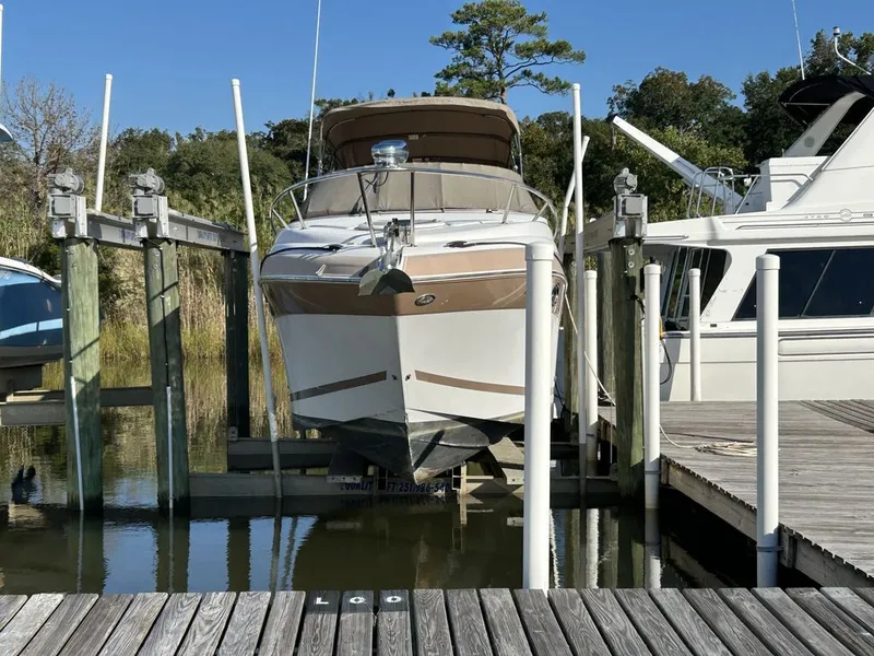 Includes full canvas enclosure with wrap-around isinglass, Bimini top, and cockpit cover - all in good condition. Powered by a dependable 350 inline-6 engine (Volvo Penta 350 V8) showing only 487 hours, This Four Winns runs smooth and strong.