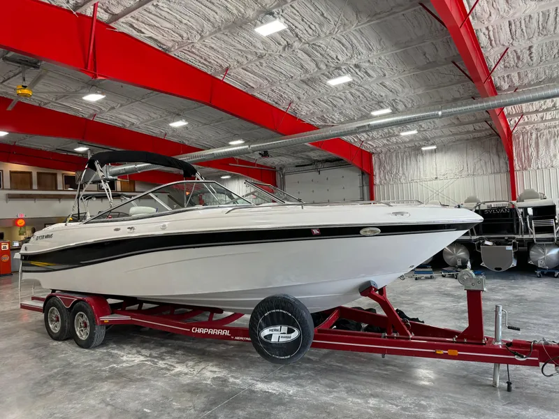 This is a clean 26-foot bowrider for its age equipped with a fuel injected 5.7GXi Volvo Penta 320 hp V8 with 702 hours, Duo Prop drive, extended swim platform, walk-through transom, bimini top, AM/FM, stereo, bow and cockpit cover, snap-in cockpit carpet, compass, tilt wheel, porta pottie, docking lights, dual batteries w/switch, cockpit table, and more. Price does not include Trailer but we have used if available for $4500 and New for $6900. Financing and delivery are available. We accept trades.