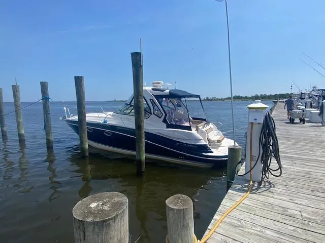 This 35 foot cruiser offers everything you need to travel elegantly from day to night and from shore to shore - while entertaining with ease. Stable Vee-Hull for optimum turning performance at high speeds, no sliding, carves turns with ease!! Enjoy the protection of an enclosed, lighted hardtop cabana and the comfort of a temperature-controlled cabin.