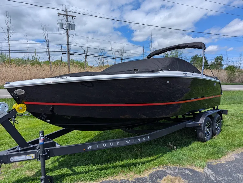 Back by popular demand and in stock for immediate delivery! All the goodness of the Four Winns H2 at a dramatically reduced price, stock boat is Black with a red stripe, has the 4.5L MercCruiser 250HP engine with Alpha outdrive, Reed flooring, swim platform mat, and bow & cockpit covers all for just $61,998!!Basic Warranty (Months): 12EngineEngine Type: V6Cylinders: 6Horsepower: 250 bhp; 184 kWFull Throttle RPM Range Low: 4800Full Throttle RPM Range High: 5200Cooling: Water (Open Loop)Bore: 102 mm; 4 inStroke: 92 mm; 3.6 inDisplacement: 4507 cc; 275 ciStarter: ElectricAlternator Amps: 70Fuel Type: GasCarburetion Type: Fuel InjectedTrim System: StandardTrim System Type: PowerTechnical SpecificationsLength: 264 in; 6700 mmBeam: 101 in; 2.6 mDraft: 37 Drive Down; 939.8 Drive DownWeight Capacity: 1650 lbs; 748.4 kgNumber of Passengers: 12Fuel Capacity: 40 gal; 151.4 lExteriorHull Material: FiberglassSteeringOutboard Steering Control: RemoteInstrumentationSpeedometer: StandardTachometer: StandardGlassWindshield: Standard
