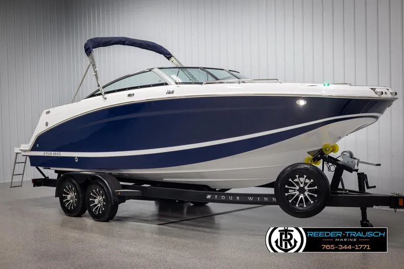 The 2025 Four Winns HD5 is an impressive new fiberglass boat, ideal for families and groups seeking luxury and performance on the water. Measuring 24.5 feet in length with a beam of 8.5 feet, it offers ample space and stability. The boat's sleek white and navy design complements its robust construction, crafted from fiberglass reinforced materials to ensure durability.