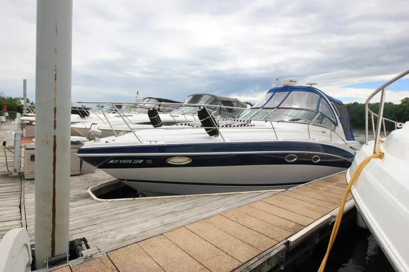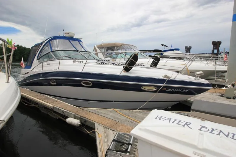 Comes equipped with: Twin Volvo 5.7L GI 300HP engines w/996 hours, full enclosures, cockpit cover, bow thruster, radar arch, radar, Raymarine C80 GPS, AC/Heat, generator, Windlass anchor, remote spotlight, VHF radio, flexiteek cockpit flooring, woven mat swim platform flooring, cockpit wetbar w/Sink + refrigerator, helm companion seat w/Bolster seats, cockpit table, bow sunpads, cockpit marine stereo w/Speakers, (2) Flat screen TV's, private head w/Vacuflush toilet + sink + shower head, full galley w/refrigerator, stove top, microwave, & sink, dinette filler cushion, mid cabin filler cushions, and more! This boat is fully loaded, clean, and ready to be enjoyed by it's next owner! It's desirable slip in Prescott is available with purchase. Call to schedule an appointment to see this beauty!