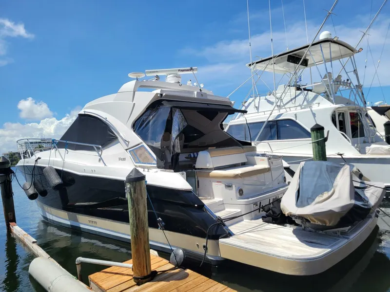 Isabella IV is a very well appointed cabin cruiser with two heads and two cabins and a convertible salon with room to sleep six. Appointed with a voluminous cockpit under air condition with a large sliding hard-top, wide side decks and large easy cockpit access forward. Luxurious teak cockpit table and teak flooring, tables and hydraulic teak platform for your tender. Transome Electric BBQ grill with electric sliding transome sunbed backrest and a large platform gives you more areas to entertain. Don't miss the opportunity to purchase a well appointed cabin cruiser all packed in this popular model for Four Winns. The 435 Vista was designed with a modern blend of European Design ideas and US functionality.