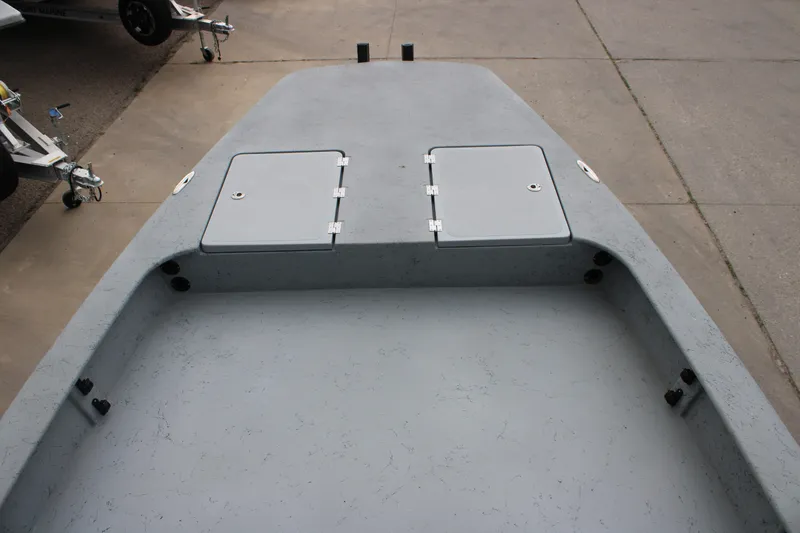 - Seven foot front deck with two large storage compartments and anchor compartment, large fiberglass access hatches, six under the deck rod storage tubes,