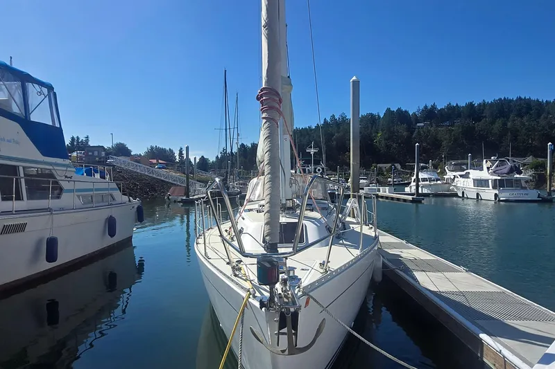The Freedom 35 is a delight to sail, the main is essentially self- tacking and the jib is easily handed. She is a great choice for a single-hander, double handed sailing or a small family. Her performance rivals the much more voluminous designs of today and way easier to sail.