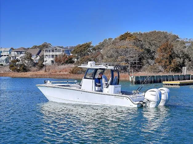 The 28 Freeman is undoubtedly the Swiss Army knife of the Freeman fleet. She is powered with twin 300 HP Yamahas that provides all the power it needs with a top speed of 69 miles per hour. Motors have 360 hours with full warranty through 9/2028. The boat is fully loaded and ready to fish or run to the local sandbars. She has been stored on a lift and is meticulously cleaned after each boating adventure.