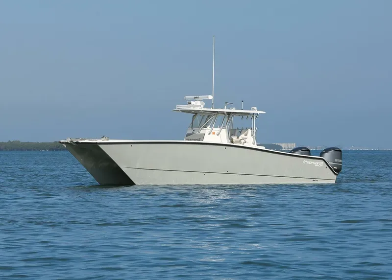 The Freeman 34VH was spawned from the tried-and-true Freeman 33, boosting top speed and fuel efficiency to set a new standard in the center console market. With Vented Hull technology, the Freeman 34VH provides a smooth and stable ride in nearly every sea state, so you'll stay dry and comfortable fishing in even the most inclement conditions.