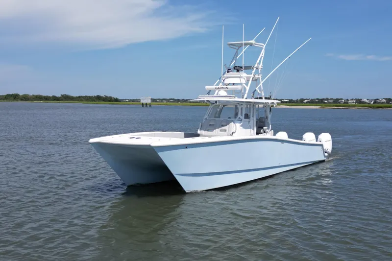 Look no further!! Here is a beautiful used 2021 Freeman 37 VH with upper station powered by Mercury V8 300's! She is absolutely gorgeous with her Ethereal Blue hull sides and Mist colored upholstery. She's been pampered her whole life and ready for her next owner. This was the first 37 to have the new 38 cap and liner installed so a dive door can easily be added! The only reason for selling is the owner has another larger Freeman on the way so this one must go. Skip any sort of wait at the factory and get this one ASAP. Call for more details and to schedule a showing.