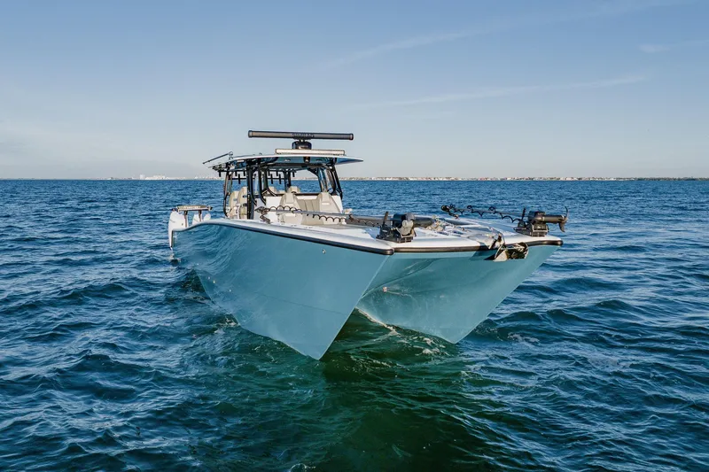 This 2025 Freeman 42 LR is a fully loaded, low-hour example that has been exceptionally maintained and kept under a covered boat lift. Powered by quad Mercury V10 400 HP outboards with just 110 hours, this boat is spec'd perfectly and completely turnkey, ready for its next owner.