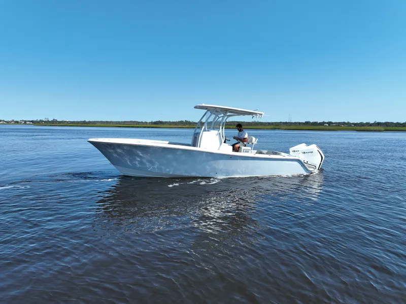 Versatile Performance: The Front Runner 26 Center Console is designed for both inshore and offshore fishing, providing anglers with the flexibility to tackle various water conditions with ease. 2. Spacious Layout: With a roomy deck and ample storage, this model offers plenty of space for gear, making it ideal for fishing trips or family outings. 3. Advanced Features: Equipped with modern electronics and fishing amenities, including rod holders and live wells, the boat enhances the fishing experience for enthusiasts. 4. Comfortable Seating: The ergonomic seating arrangement ensures comfort during long days on the water, allowing passengers to relax while cruising or fishing. 5. Robust Build Quality: Constructed with high-quality materials, the Front Runner 26 is built to withstand harsh marine environments, ensuring durability and longevity. 6. Stylish Design: The sleek and contemporary design of the boat not only looks great but also aids in performance, providing better handling and stability on the water.