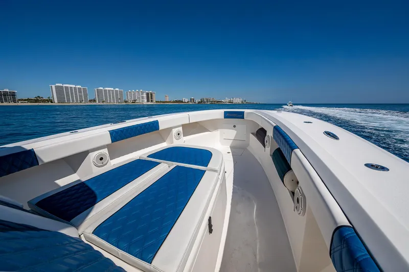 - Premium Seating & Layout - Forward loungers, helm seating, and rear bench