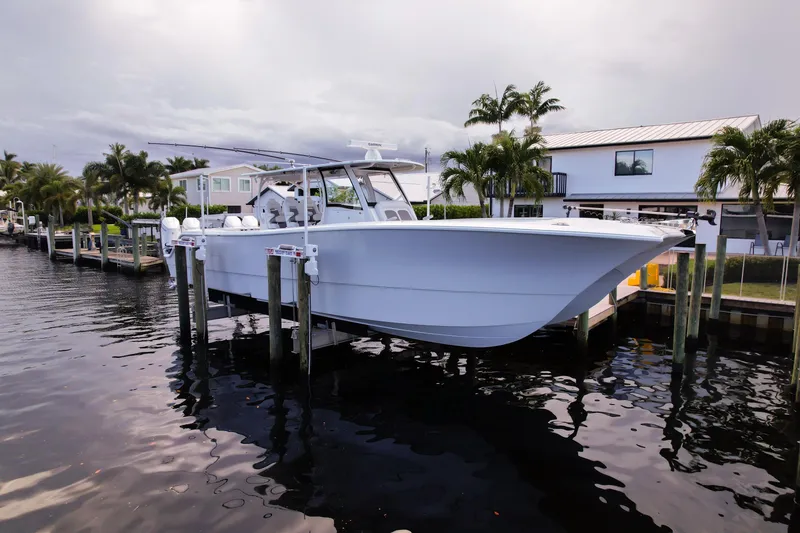 Powered by quad Mercury 400HP V10 Verados (white engines, 175 hours) with Mercury E-Steer and joystick, this 43 delivers outstanding performance, handling, and reliability. Outfitted with a comprehensive Garmin electronics package, upgraded JL Audio sound system, Power Pole Move trolling motor with lithium power, and Starlink satellite internet, every detail has been dialed in for serious anglers and family days alike.