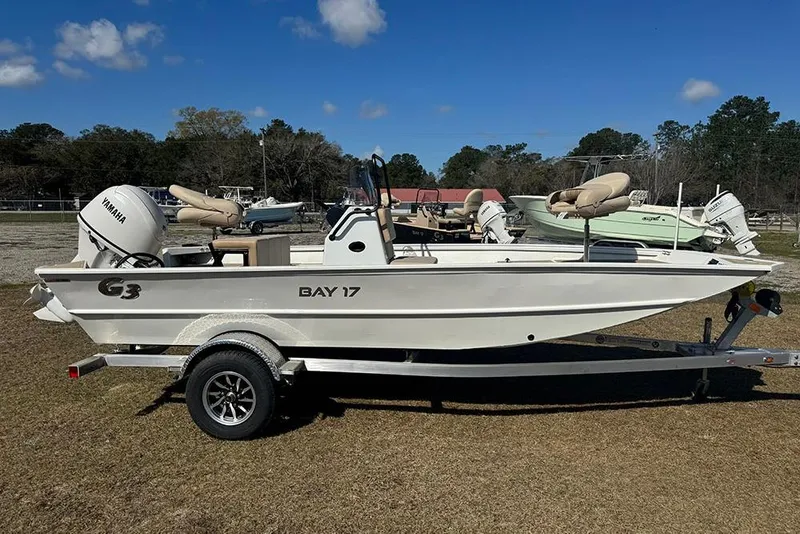 This White G3 Bay 17 has a YAMAHA F70LB2 outboard motor.