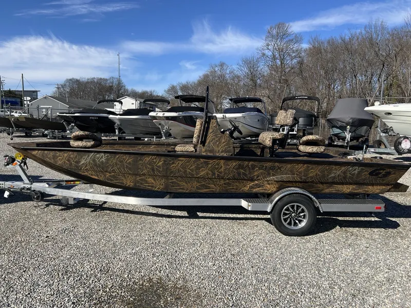 2026 G3 Bay 21 GX. Shadowgrass Camo. Pick your Yamaha Power. Hydraulic Steering. Full Gauge Package. Pre-Wired for Trolling Motor. Leaning Post w/ Removable Backrest. Flip Up Transom Seats. 2 Fishing Chairs. Dual Livewell. Fold Down Windshield and Grab Handle. 3- Bank Battery Charger. Nav Lights. Bilge Pump. Transom Buoyancy Pods. Custom Aluminum Trailer w/ Spare.
