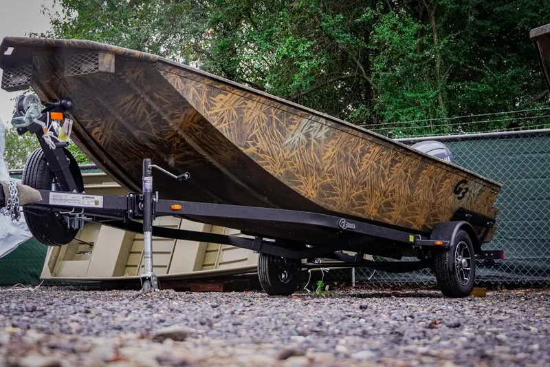 The 2026 G3 17 DK is a brand-new model designed to give hunters and anglers the rugged dependability and shallow-water performance they've been asking for. Built from all-welded aluminum and finished in full Shadowgrass camo inside and out, this boat disappears into the marsh, making it the perfect partner for waterfowl season or backwater fishing missions. A Yamaha F50LC tiller-handle outboard powers the 17 DK with proven reliability, while the open layout offers plenty of space for decoys, blinds, or fishing gear. A custom black trailer with a spare tire and carrier ensures easy transport wherever the season takes you. Strong, stealthy, and versatile, the new 17 DK proves once again why G3 is trusted by outdoorsmen who expect their boat to work as hard as they do.