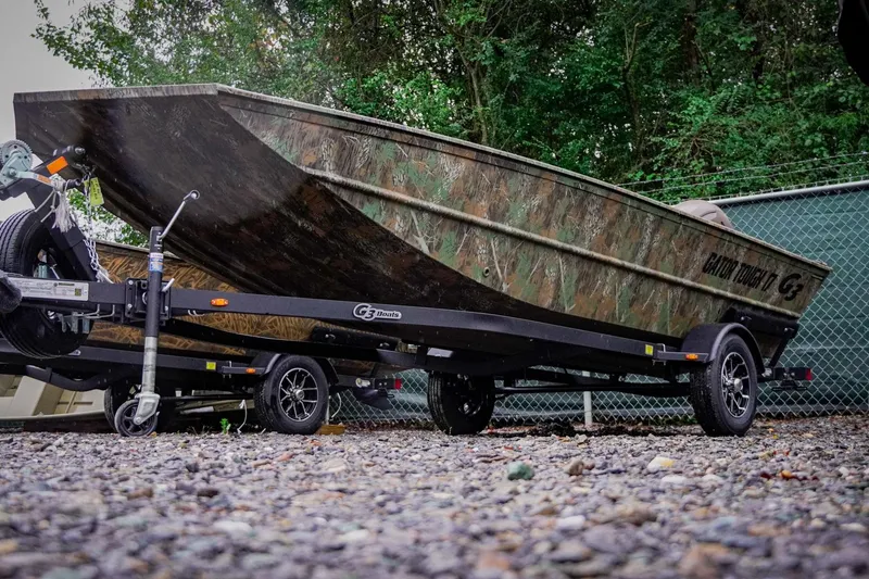 The 2026 G3 17 SC is built for outdoorsmen who want a rugged, versatile boat with the added convenience of side-console control. Finished in full Breakup camo inside and out, this Jon is ready to blend into the marsh at sunrise or sneak into backwater fishing holes at dusk. Powered by a Yamaha F50LC3 outboard, it delivers reliable performance with smooth handling, while the quick-connect cable steering makes driving simple and responsive. With its all-welded aluminum hull, open layout, and custom black trailer with a spare tire and carrier, the 17 SC is as dependable on the road as it is on the water. Whether you're chasing ducks, running rivers, or casting for bass, the new 17 SC offers the toughness and convenience you need in a compact, easy-to-handle package.