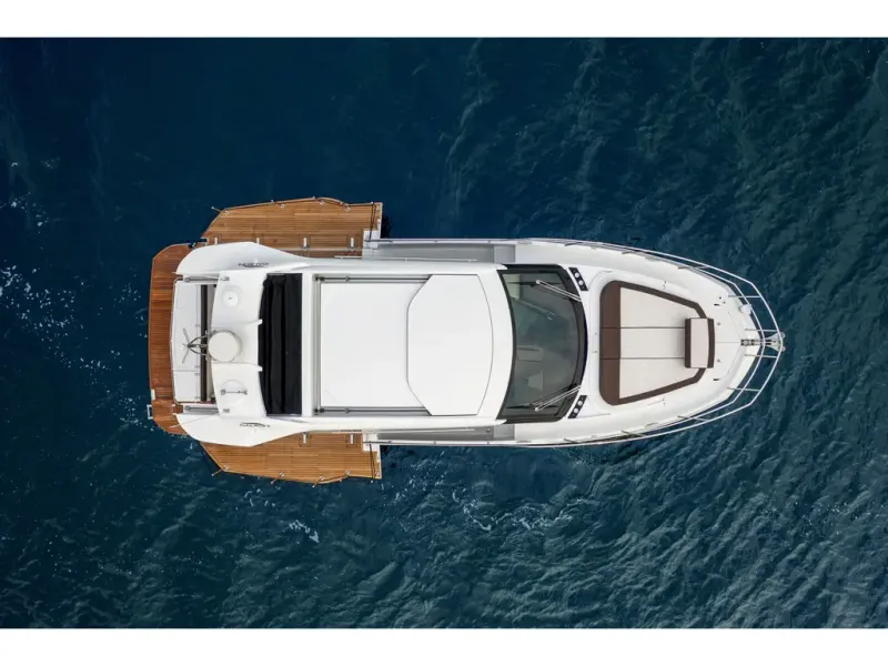 Innovative Features: This model includes advanced amenities such as a well-equipped helm station, spacious cabins, and practical storage solutions.