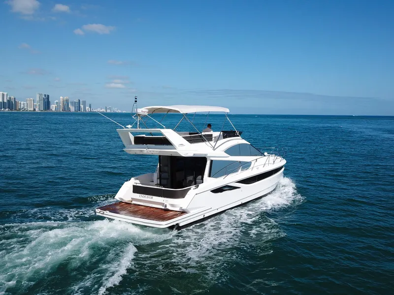 Step aboard the 2016 Galeon 420 Fly, a sophisticated flybridge yacht that combines luxurious amenities with exceptional performance. With its sleek profile, innovative design, and meticulous upkeep, this vessel is ready to deliver unforgettable experiences on the water.