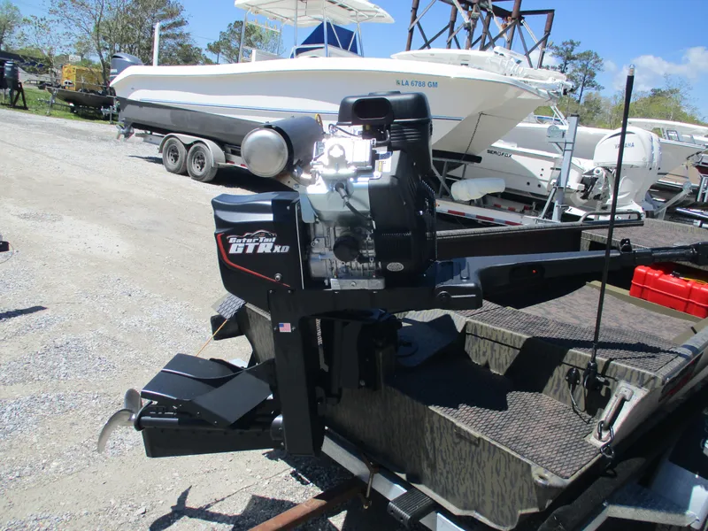24" SIDES, 4' FRONT DECK, MOD V, BOW RAILS, REAR DUAL PODS, 2 GUN TRAYS, SWAMP LIGHTS, ACC PKG 4 WITH 9 GALLON TANK, GATOR TAIL TIMBER CAMO HULL, CAMO TURF,