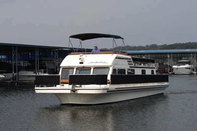 Introducing the 1997 Gibson 47 Sport Houseboat, a splendid vessel designed for comfort and enjoyment on the water. With an overall length of 47 feet, this houseboat boasts a robust fiberglass hull in a planing shape, ensuring stability and performance. Powered by twin Crusader 350 H.T. inboard engines, this boat is equipped with a V Drive system, offering reliable propulsion for your adventures. The electric windlass enhances convenience, making anchoring effortless. The interior features a well-appointed head, providing essential amenities for your journeys. This houseboat is perfect for entertaining or relaxing, with ample space to accommodate friends and family. Whether you're cruising on a serene lake or enjoying a weekend getaway, the Gibson 47 Sport Houseboat promises a delightful experience, combining functionality with a touch of luxury. Embrace the freedom of the open water with this charming vessel.