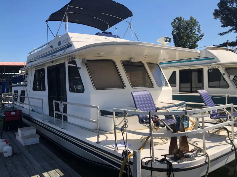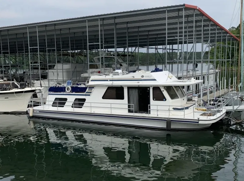 Introducing the 1994 Gibson 50 Cabin Yacht, a splendid houseboat that perfectly blends comfort and performance. With an overall length of 50 feet, this vessel offers ample space for relaxation and entertainment. Crafted from durable fiberglass, it boasts a robust hull designed for stability on the water. Powered by twin Crusader 454 inboard engines, each delivering an impressive 320 horsepower, this yacht ensures a smooth and powerful cruising experience. With engine hours of 637 and 649, it has been well-maintained, promising reliability for your adventures. Accommodating two heads, this boat is designed for convenience and comfort. The thoughtful layout allows for enjoyable gatherings and memorable outings. The 50 Cabin Yacht is an ideal choice for those seeking a versatile and spacious houseboat, perfect for weekend getaways or extended cruising. Experience the joy of life on the water with the elegant and functional Gibson 50 Cabin Yacht, aptly named "Finally."