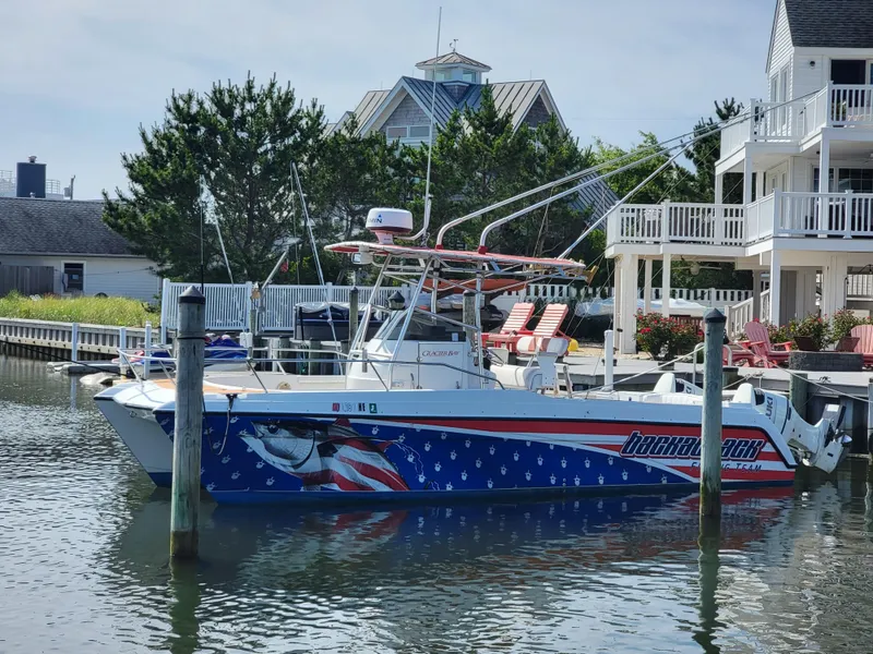 A solid fishing platform with incredible stability with excellent fishing amenities. Powered with a pair of newer Suzuki 150 Sour Strokes and newer Garmin Electronics makes her a fishing machine targeting your favorite species. Excellent deck storage and fishboxes.