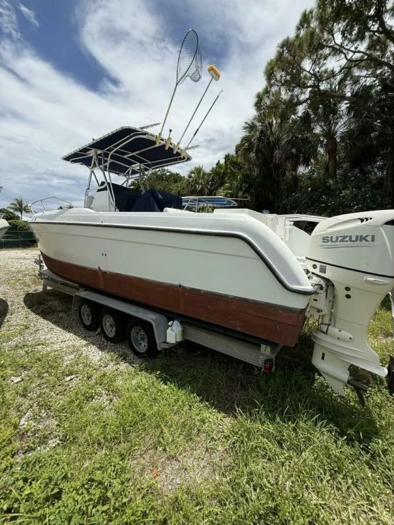 Powered by twin 2021 Suzuki 140-horsepower four-stroke outboards with just 62 hours, she delivers smooth, confident performance with the fuel efficiency and reliability of modern power. New digital controls provide crisp, responsive handling at the helm, complemented by a Garmin 741XS chartplotter/fishfinder for clear and accurate navigation.