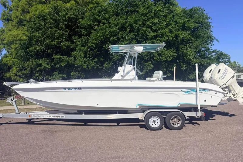 Introducing the 2018 Glasstream 280 Pro-XS, a remarkable high-performance boat that combines sleek design with exceptional functionality. Measuring an overall length of 28 feet, this vessel features a robust fiberglass hull with a modified Vee shape, ensuring a smooth and stable ride on the water. Powered by a reliable 200 hp Suzuki outboard engine, this boat boasts 540 hours of use, showcasing its performance capabilities. The engine configuration is designed for efficiency and responsiveness, making it perfect for both leisurely cruises and thrilling adventures. The Glasstream 280 Pro-XS is equipped with essential features, ensuring a seamless boating experience. Its thoughtful design and construction make it an excellent choice for enthusiasts seeking both speed and comfort. Whether you're fishing, cruising, or enjoying time with friends, this boat promises to deliver unforgettable moments on the water.