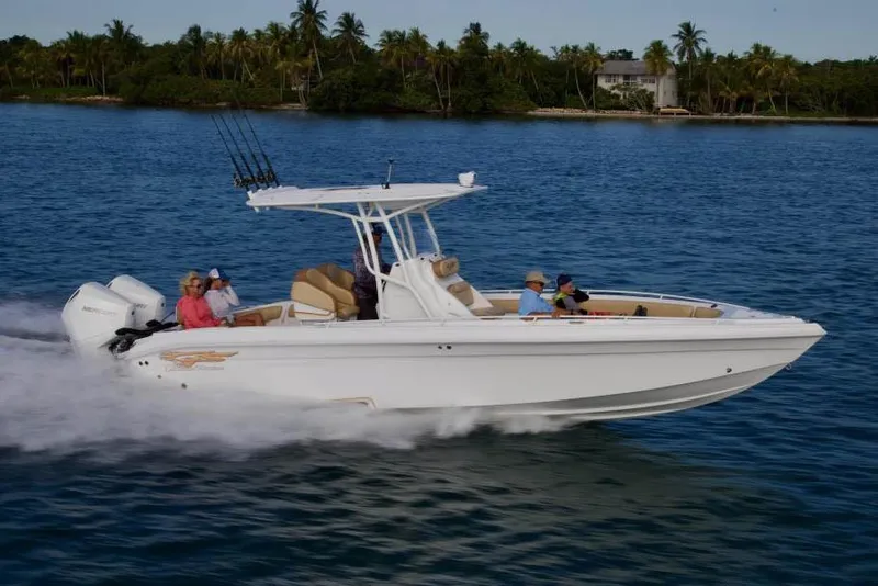 Introducing the 2020 Glasstream 280 Pro-XS, a remarkable high-performance boat designed for thrill-seekers and water enthusiasts alike. This 32.67-foot vessel boasts a sleek modified Vee hull made from durable fiberglass, ensuring both stability and agility on the water. Powered by twin 350 hp Mercury Verado outboard engines, this boat delivers exhilarating speed and responsiveness, perfect for adventurous outings. With only 150 hours of use, it promises reliability and performance for your next journey. The 280 Pro-XS is equipped with advanced features, enhancing your boating experience. Its thoughtful design includes ample space for relaxation and enjoyment, making it ideal for family outings or fishing trips. Whether you're cruising along the coastline or navigating through choppy waters, this boat combines power and elegance, making it a standout choice for those who appreciate quality craftsmanship and performance on the water.
