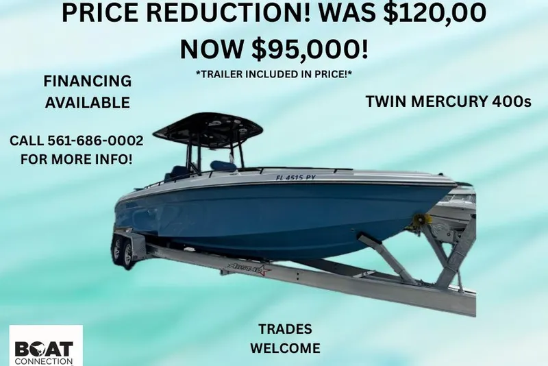 2015 Glasstream 280 ZS powered by twin 2020 Mercury 400 Verados (977/979 hrs *over 400hrs at 700RMPs or lower) with 2022 27 ft Allstar Aluminum Trailer included!