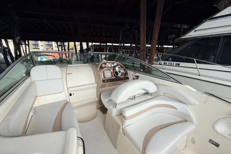 Additional comforts: A/C with reversible cycle heater, and stern filler cushions for sunbathing or sleeping. Comes with 6 buoys with lines and clips, plus buoy carriers. Kept under covered moorage on Lake Union, this boat has been fully maintained and serviced.