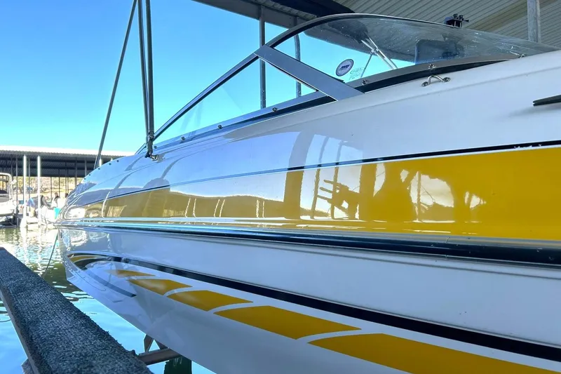 2007 Glastron GT 205 - GREAT PRICE! Powered by MerCruiser 5.0L, 220 hp, ONLY 120 hours! Faria gauges. Plentiful seating includes the 2 bow lounges, aft bench, helm and passenger flip-up bucket seats and a sun pad at the transom. Extended swim platform, ladder, ski tow ring. Bimini. Stereo and Fusion speakers. Storage. Gel coat and carpet in good condition! Freshwater boat stored on lift in covered slip. Matching trailer included!