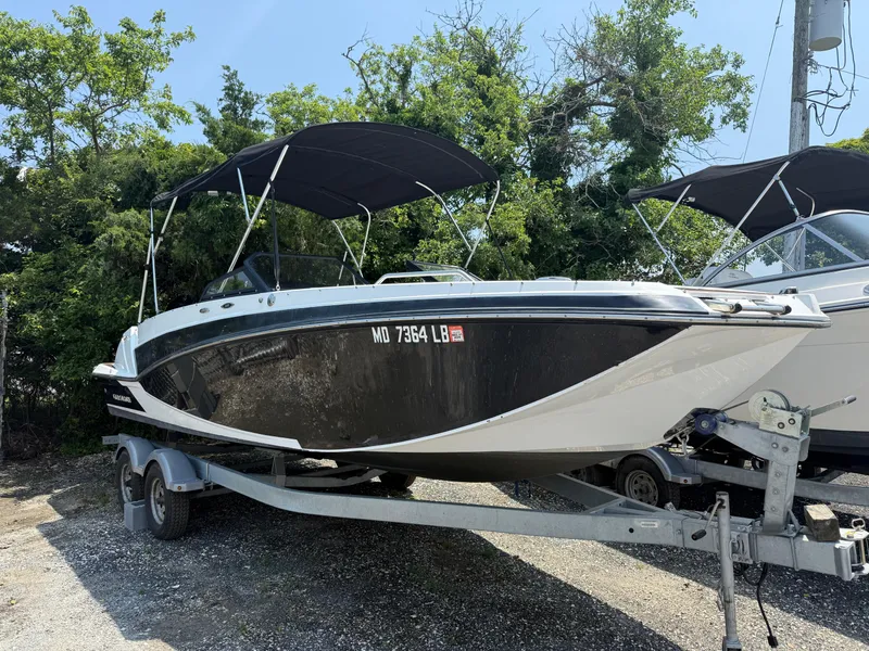 Introducing the 2022 Glastron GTD 220 Deck Boat, a stunning vessel that combines performance and style. With an overall length of 22 feet, this boat is designed for both comfort and agility on the water. Crafted from durable fiberglass, its modified vee hull shape ensures a smooth ride, making it perfect for leisurely outings or thrilling adventures. Powered by a robust 200 hp Mercury outboard engine, this boat delivers impressive performance with 758 hours of use, ensuring reliability for your journeys. The 3-blade aluminum propeller enhances maneuverability, allowing for effortless navigation. The GTD 220 features a spacious layout that invites relaxation and enjoyment, making it ideal for gatherings with family and friends. With its modern design and high-quality construction, this deck boat is a fantastic choice for those seeking an exceptional boating experience. Embrace the open water with the 2022 Glastron GTD 220!