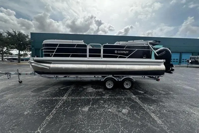 This stunning 2023 Godfrey 2286 Pontoon Boat is a perfect blend of style and performance. This used model boasts an overall length of 22 feet, making it an ideal choice for leisurely cruises on the water. Crafted with a durable wooden hull, it promises both stability and elegance. Powered by a robust 150 hp Mercury outboard engine, this boat ensures an exhilarating experience, whether you're gliding across calm lakes or enjoying a day out with friends. The aluminum propeller enhances efficiency, allowing for smooth navigation. Designed for comfort and enjoyment, the Godfrey 2286 is equipped with features that elevate your boating experience. With ample space for relaxation and socializing, it's perfect for gatherings on the water. This pontoon boat is not just a vessel; it's an invitation to create unforgettable memories with family and friends. Experience the joy of boating with this exceptional model!
