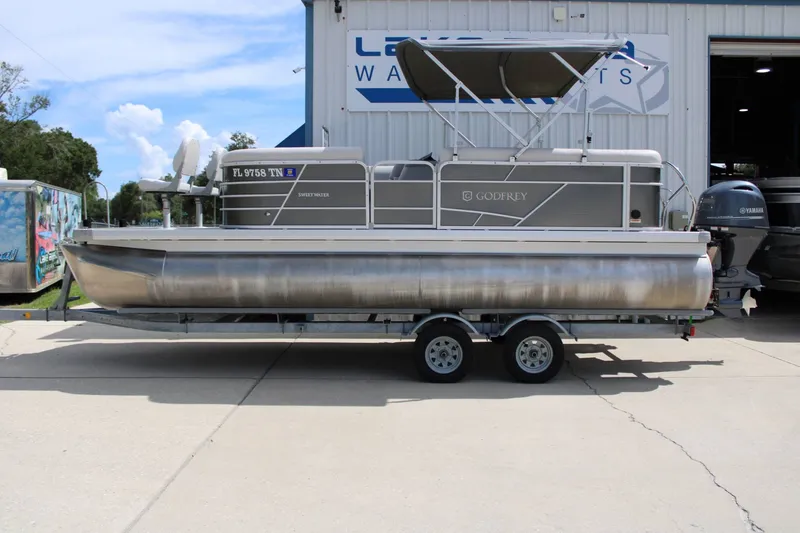 2023 Godfrey 2286 BF Sweetwater Pontoon Boat ENGINE HOURS 29 Experience the unrivaled luxury, style, and performance of the 2023 Godfrey 2286 BF Sweetwater pontoon boat. This top-of-the-line marine craft offers a perfect mix of relaxing pleasure and vigorous excitement for your water adventures. Premium Design The 2023 Godfrey 2286 BF Sweetwater showcases a distinctive and elegant design that combines sophistication and functionality. It features top-quality upholstery, ample lounge seating, and a stylish helm that provides a plush and comfortable boating experience. Performance & Handling Crafted for balance and easiness, this boat provides a smooth ride even in choppy waters. Whether you're cruising or anchored, the nimble handling and responsiveness of the 2023 Godfrey 2286 BF Sweetwater are truly remarkable. Entertainment & Comfort Features This pontoon is packed with several exciting features like a marine stereo system to serenade your cruise and a built-in cooler to keep beverages chilled while you soak up the sun. Its spacious and modern layout allows for comfortable movement around. Incredible Fishing Amenities Optimized for those who love to cast a line, the 2023 Godfrey 2286 BF Sweetwater proudly provides a well-equipped fishing station, rod holders, and a live well. Fishing trips would never be the same when you're on this excellent pontoon boat. Safe and Reliable Safety is a top priority on Godfrey boats. Expect safety features such as navigational lighting, sturdy fencing, and a secure entry ladder. This boat is not only designed for fun but also guarantees safety for everyone on board. Step aboard the 2023 Godfrey 2286 BF Sweetwater and discover the optimal combination of luxury, performance, and versatile functionality. This pontoon boat sets new standards for what you should expect from your waterborne sanctuary.