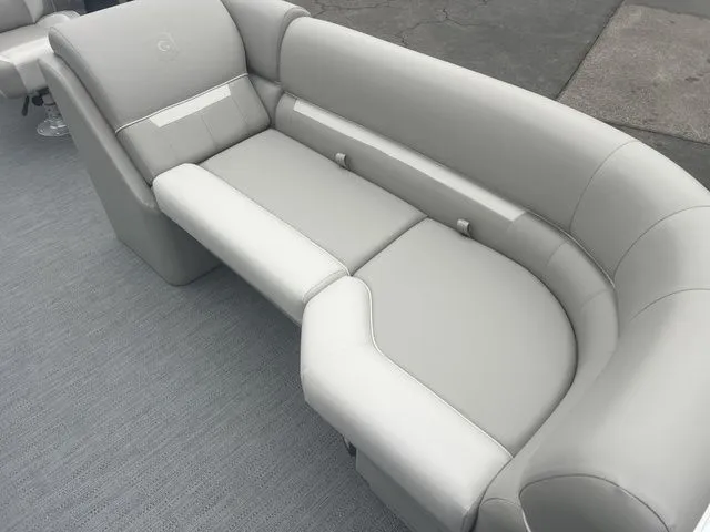 Power comes from a Yamaha F150LD, providing strong acceleration, dependable reliability, and efficient cruising power. Paired with Yamaha LD/XD steering, the boat offers precise control at the helm, making docking and tight maneuvers easy and stress-free. The Impact+ Tri-Tune Package enhances lift, stability, and cornering, giving this pontoon a noticeably sportier feel compared to traditional two-tube designs.