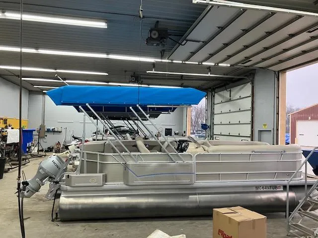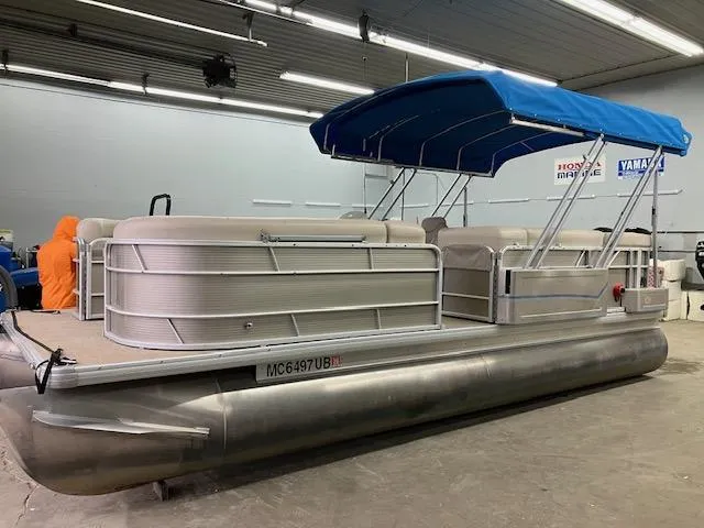 2017 Sweetwater 2286 Powered by a Honda 50hp Outboard. Options and Features include an Easy Cover, Remotre operated Cover with 4 positions to make life simple when wanting to cover or uncover your pontoon. Sea Legs, Bluetooth Radio, Sea Grass flooring, Digital depth gauge, docking lights, Mid back swivel captains chair with arm rest, Rear boarding ladder and gate, and a Pedestal table.