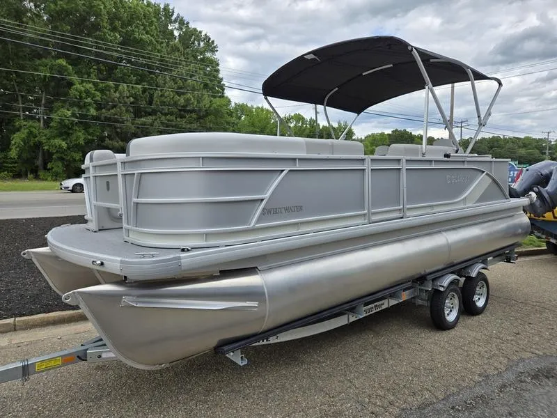 2025 Godfrey Sweetwater 2286 SB iMPACT w/ Yamaha F150LC and Tandem Load-Rite Trailer. Options Include: Power Bimini Top, Playpen Cover, Seat Covers, EZ Climb Ladder, LED Docking Lights, Silver Matte Rail Skin, Select Gray Interior, Ski Tow, Wrapped Panels For Seat Bases, Garmin Fish Finder, Multi-Function GPS Gauges, Hydraulic Steering, Clarion Stereo, Upgraded Steering Wheel, Windscreen, Wireless Phone Charger, 27" Impact Center Tube Package, . PRICE LISTED IS MSRP. CALL FOR SALE PRICE. Extended WARRANTY Available on the Yamaha! FINANCING AVAILABLE!! Call Sales Department More available Inventory