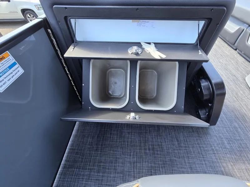- Keep your deck tidy with the optional tilt-out trash can insert, for a clutter-free space. Additional insert options include dog bowls, drawer units, a folding table or integrated tackle storage units.