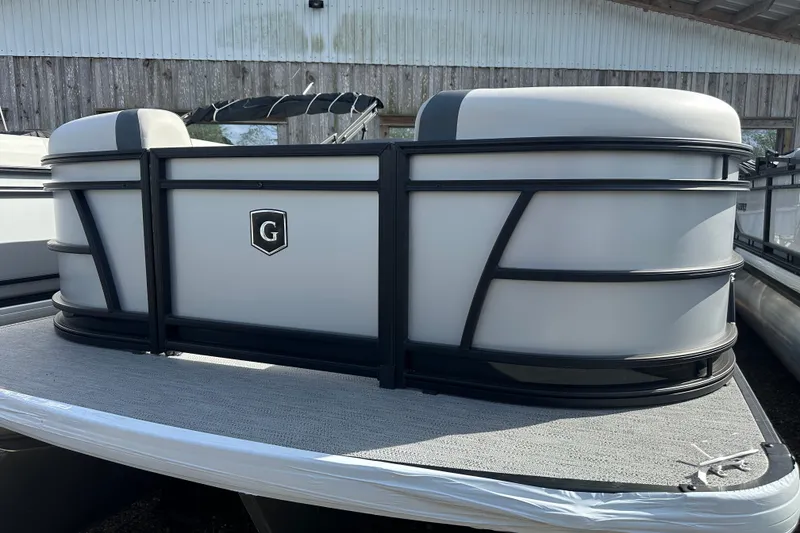 Rail skin is smooth silver matte with upgraded rub rail and black skirting, ultimate tow bar, adjustable pedestal captain & co-captain chairs, upgraded swivel/slider/reclining captain & co-captain chairs, changing room, Garmin 743xs Chartplotter/Fish Finder, windscreen, and MORE!