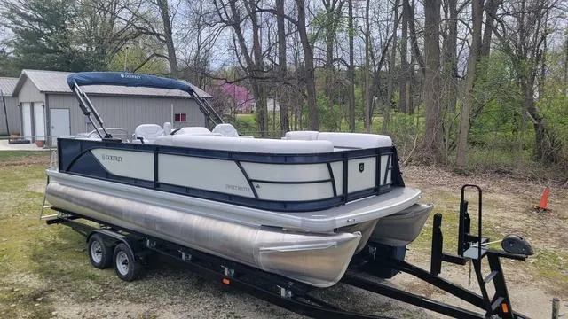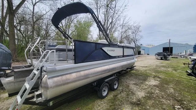 2024 Godfrey Pontoons Sweetwater 2286 SFL 27 In. Package, 150hp Yamaha with only 33 hrs and SST prop, Warranty until 6/6/29, GTP IMPACT triple toon with larger 27" center pontoon, lift strakes, underdeck aluminum, In Floor Storage, LED Dock Lights, Co-Captain Seat w/Swivel & Glider, GPS Gauges, Full Spectrum Lighting Pkg.-Under Seat Mood, RGB Cupholders, Courtesy Lights & Under Deck Lighting, Under Deck Skin, power bimini top. Note: Trailer Not Included