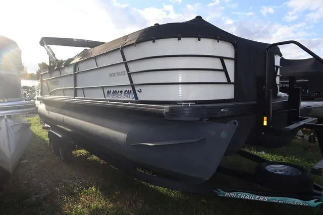 2021 Godfrey Sweetwater 2286 SFL Triple Tube Package, Price Includes a Mercury 150L, Stainless Steel Prop, 22' Tandem Axle Trailer w/ Brakes, GTP 27" Center Tube Package (OB): Two 25" outer tubes, 27" center tube; Under deck skin, Full; Inside Skirting; Lifting strakes; 45 gal fuel tank; Mult Function GPS Gauges; heavy Duty Channels, Midnight Package: Black Skirting w/ Bow Extension, Black Rub Rail, Black Rails, Black Canopy Frame, Black Corner Caps, Black Ladder, Hydraulic Steering, In-Floor Storage, LED Docking Lights, RGB underdeck lighting, Fusion stereo w/ 4 speakers, Lowrance Hook2-4X Fish Finder, Stainless Barrie w/ Gate, Factory snap Mooring Cover, Bimini top w/ Boot, Lakeport Plank Flooring, Battery & Extra set of Seat Covers