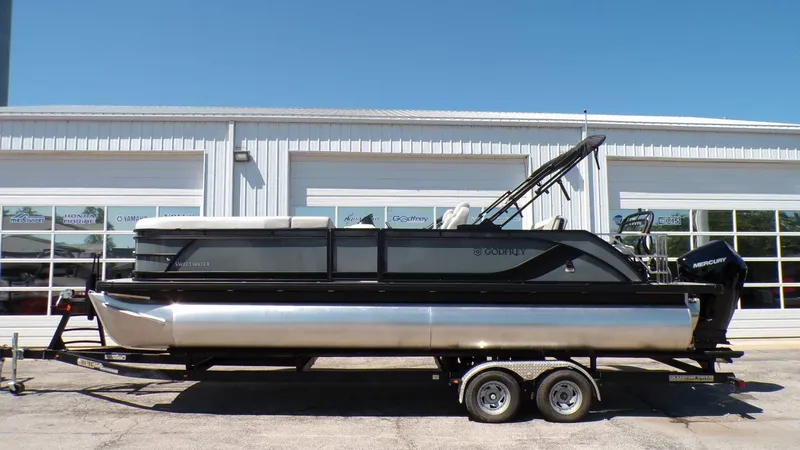 The 2025 Godfrey Sweetwater 2486 SFLC w/ iMPACT Plus Tritoon Package is perfect for boating enthusiasts and families seeking a versatile, stylish, and high-performance pontoon boat. Ideal for those who love spending quality time on the water, it offers spacious seating, advanced features, and a smooth ride, making it great for leisurely cruises, fishing, watersports, and entertaining guests. Whether you're a seasoned boater or new to pontoon boating, this model is designed to provide comfort, durability, and fun for all ages.
