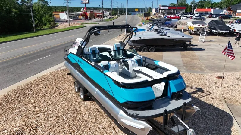 2024 Godfrey XP 2700 W w/iMPACT PLUS Toon Package, 2024 Godfrey XP 2700 Full Windshield Boat The 2024 Godfrey XP 2700 is not just another boat on the horizon, instead, it is a vessel that speaks the language of ultimate luxury and unrivaled performance. Loaded with cutting-edge features, this boat is ready to exceed all your boating expectations. Mercury 400R Racing Motor Power-packed with a potent, state-of-the-art Mercury 400R racing motor , this boat guarantees an exhilarating riding experience. The engine not only ensures robust speed, but its highly efficient design also supports an outstanding fuel economy. Superior Tritoon Package The boat comes with an Impact Plus Tritoon package , providing increased stability and excellent handling. The tritoon foundation allows for higher passenger capacity, and great water sports capabilities, making your every journey unforgettable. Luxury Combined with Performance When it comes to the combination of luxury and performance, the Godfrey XP 2700 significantly outshines its competition. The generous seating space, intelligent storage solutions, elegant detailing, and outstanding technical characteristics make this model the perfect option for those who demand nothing less than the best. Experience the water like never before with the 2024 Godfrey XP 2700- A boat that settles for no compromises. Custom order color - Miami Blue Call the Iguana team to get more information on this Godfrey XP 2700 for sale at Lake of the Ozarks. 573-355-5027