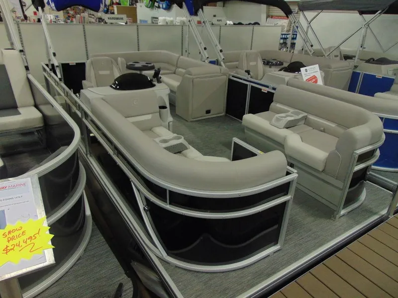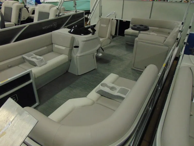No Motor Included in this price. Price with a 60 Mercury is $32,995 Options/Upgrades Include: Playpen Cover Outside Skirting 25" Pontoons LED Docking Lights Platinum Weave Flooring Captain's Chair Upgrade Changing Room Chaise Windscreen Wireless Phone Charger Fusion Stereo Mercury Pre-Rig