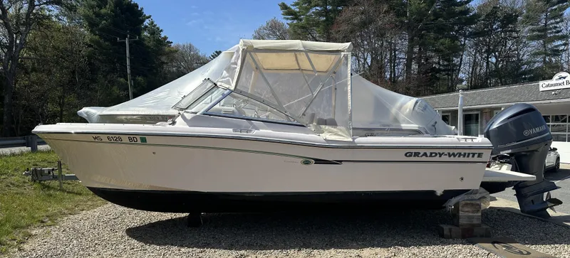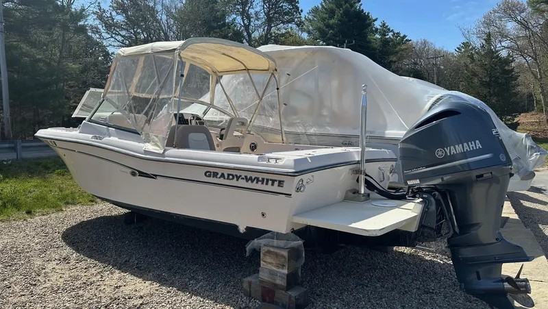 Legendary Grady White 225 Freedom with a Yamaha F250 engine with only 120 hours. Originally sold, serviced and stored by Cataumet Boats. some of the features of this boat include a Vista top with front and side curtains, a bow cover, portside sleeper seat, and a deluxe helm chair. This boat has an enclosed head with a macerator included, a bow table, raw water livewell, ski pylon and a raw water washdown. The electronics on this boat include a Garmin 741xs touch screen as well as a Garmin 100 VHF radio. the cushions are in good shape, however there is one bow cushion that should be recovered. this is an excellent opportunity to buy a one owner boat that has been lightly used. Call before it gone!