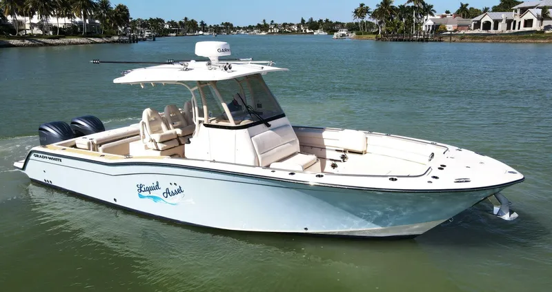 Liquid Asset is a very clean, low hour, well cared for 2022 Grady White 326 Canyon