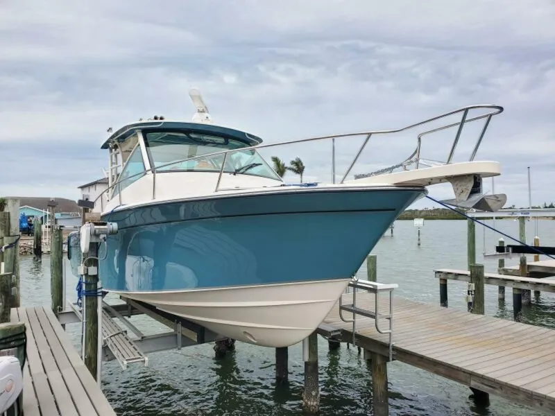 Loaded 2018 Grady White 330 Express. Powered by twin Yamaha 350s with 755 hours indicated. Both engines annually serviced 9/25. About 12 hours on the last service. 2 Owner vessel. Lift stored, no bottom paint. Recent buff and wax. Low hour Panda diesel generator, air conditioning, bow thruster, Yamaha joystick engine controls, GPS anchor, twin Garmin GPSmap XSV touchscreen navigation, open array Garmin radar, Garmin Autopilot, twin Garmin VHF radios, windlass, air conditioned helm, 3 refrigerators, flat screen TV, stove, microwave, hot water heater, underwater lights, cockpit sink, refrigerated fish box with freezing capability, Isinglass cockpit enclosure with updated zippers and maintenance, side dive door, stainless telescoping swim ladder, fresh and saltwater washdowns, synthetic teak cockpit flooring, 50 AMP shore power, new trim tab system, new hull side paint, pin stripe logos and vent, stainless telescoping aft sun shade etc. Factory flywheel updates have been completed. Recent annual engine service 9/25.