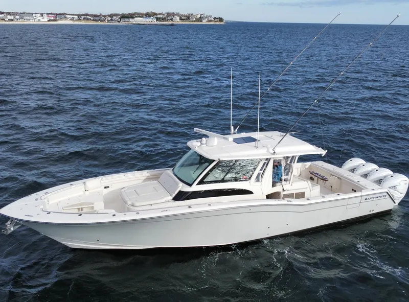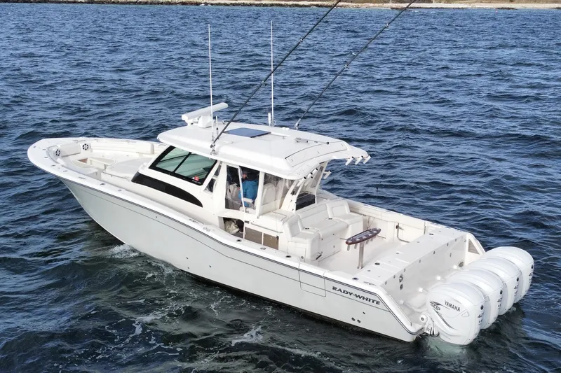 A true head turner on both the dock and while underway. Powered by Quad Yamaha 425' with 800 hours this 456 Canyon will get you to where you are going quickly. The owner has already purchased his next boat and is motivated to move. This boat is loaded with options, and is in the water ready for immediate sea trial.